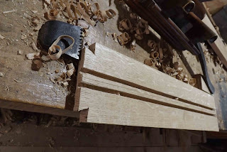 Trial-fitting of the drawer rails, prior to the final drawboring and assembly of the chest.
